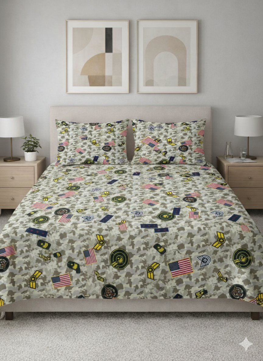 3Pcs Printed Stitched Double Kids & Adults Bedsheet Set